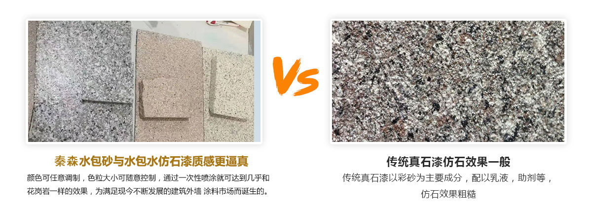 秦森天然真石漆,一直堅持使用高品質原材料,絕不為了利潤向低端妥協,主要采用各種顏色的天然石粉配制而成,應用于建 筑外墻的仿石材效果。